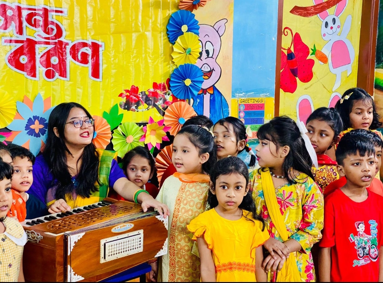 The celebration continued with a delightful musical performance. Along with our music teacher, the children sang beautiful Falgun songs, filling the air with melody and happiness.