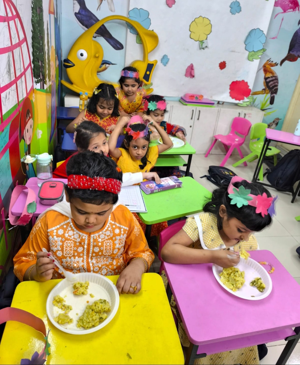 To celebrate the occasion, the students enjoyed a creative crafting session where they made lovely flower crowns with their own hands. Their creativity and joyful smiles truly brightened our day.